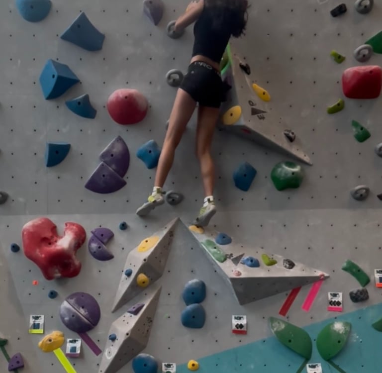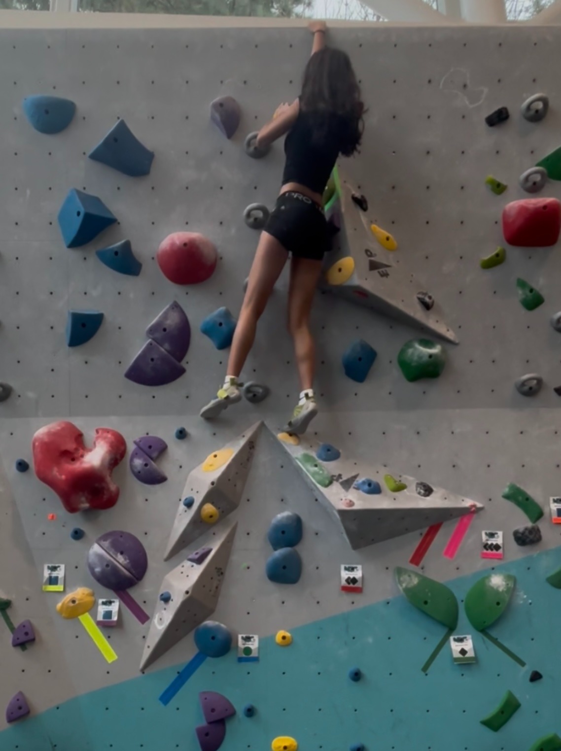 I started rock climbing at the Nike gym near my house the summer before freshman year. I had no expectations for myself and saw climbing as just another way to pass the summer. The gym had two walls: ropes and bouldering. I only stayed on ropes though because I was terrified of falling from the bouldering wall. As I improved, the gym staff recommended I try out for a team, so that winter I tried out at the Portland Rock Gym. But to my horror, every assessment was based on the bouldering wall. I wanted to show them the form and tricks I learned from admiring professional climbers at the Nike gym but I just couldn't get over the fear of falling. So inevitably, I wasn't chosen. Frustrated, I set out to overcome my fear of the bouldering wall. With the help of Allyx, the head routesetter, I learned how to fall safely. I kept practicing until I genuinely began to enjoy bouldering. Now, my goal is to keep making progress until tryouts next year, where I can boast my interest and ability to boulder!